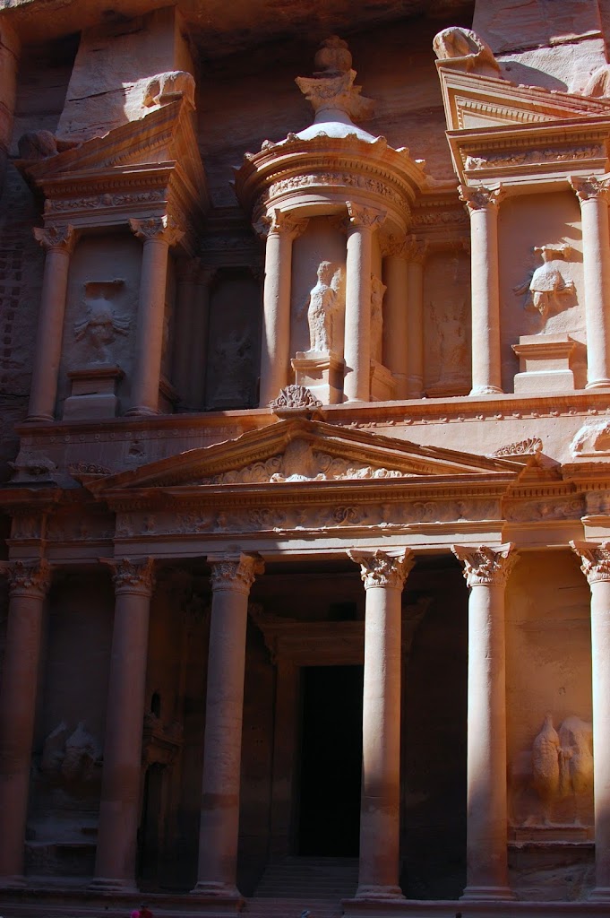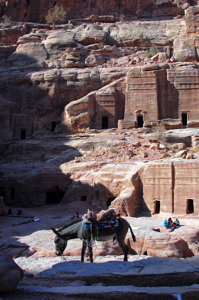Sisaankaynnin ja pienen kavelyn jalkeen tullaan legendaariselle Siqille. Siq on kapea kaytava kahden kallion valissa, ja on syntynyt kallioiden revettya toisistaan luultavasti maanjaristyksen takia. Noin vartin hitaan kavelyn jalkeen tullaan ensimaiselle rauniolle, Al Khaznehille. Tama on se rakennus mista suurin osa ihmisista tunnistaa Petran. Olihan se upea, mutta sisaankaynnilla oli hieman liikaa ihmisia. Alueella on kuitenkin onneksi sen verran tilaa, ettei Efesos-kokemus uusiutunut. Kiertelin raunioita, kiipeilin kallioille vanhoja kiviportaita pitkin, nautin maisemista ja sita rataa. Hautakammiot (joihin suurin osa turisteista keskittyy) ovat ulkoa upeita, mutta sisalta suht yksinkertaisia ja tyydyin katselemaan useita vain ulkoa. Upea paikka silti.